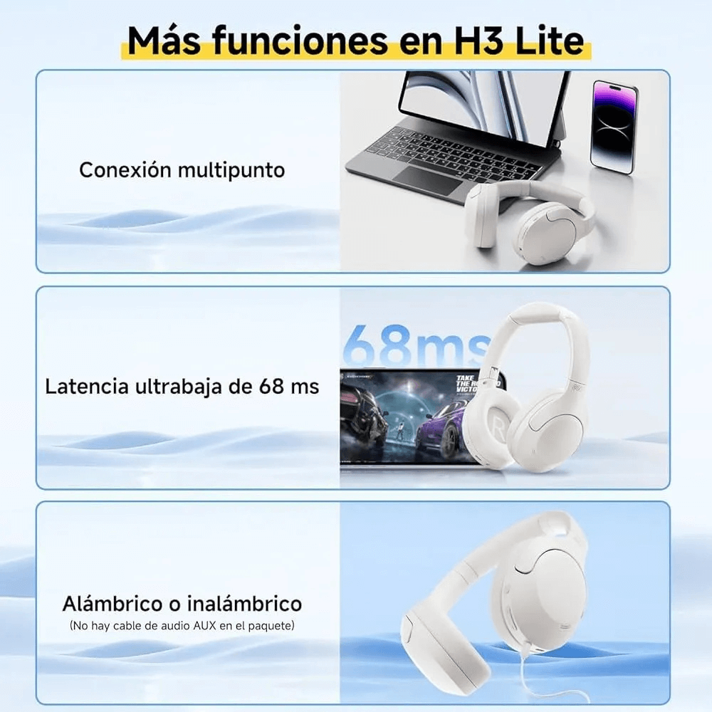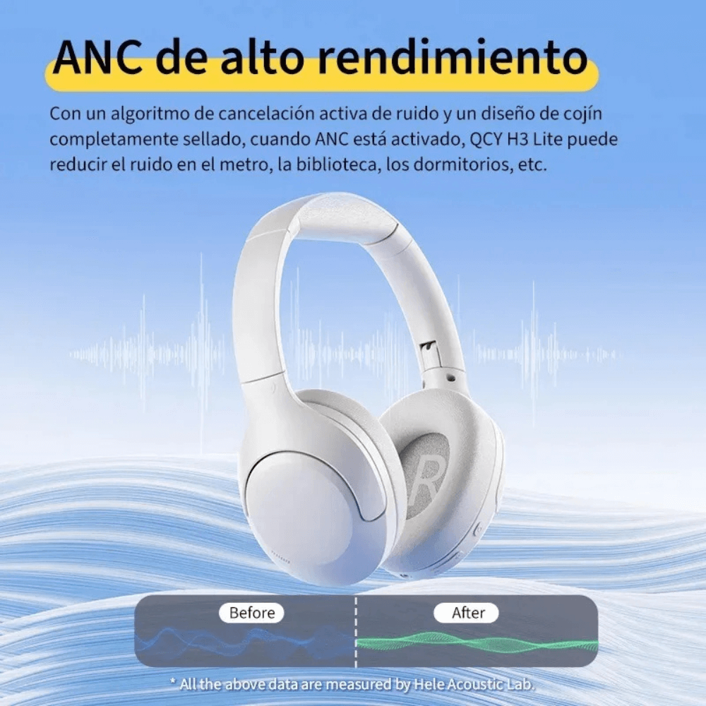 Con cancelación activa de ruido (ANC) integrada, los QCY H3 Lite bloquean hasta el 90% del ruido ambiental, permitiéndote disfrutar de tu música o concentrarte sin distracciones, estés donde estés.