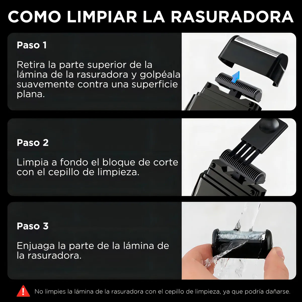 Rasuradoras Eléctricas Su cabeza de corte es desmontable y la malla de cuchilla es lavable. Limpiarla es rápido y sencillo, lo que asegura un buen rendimiento.