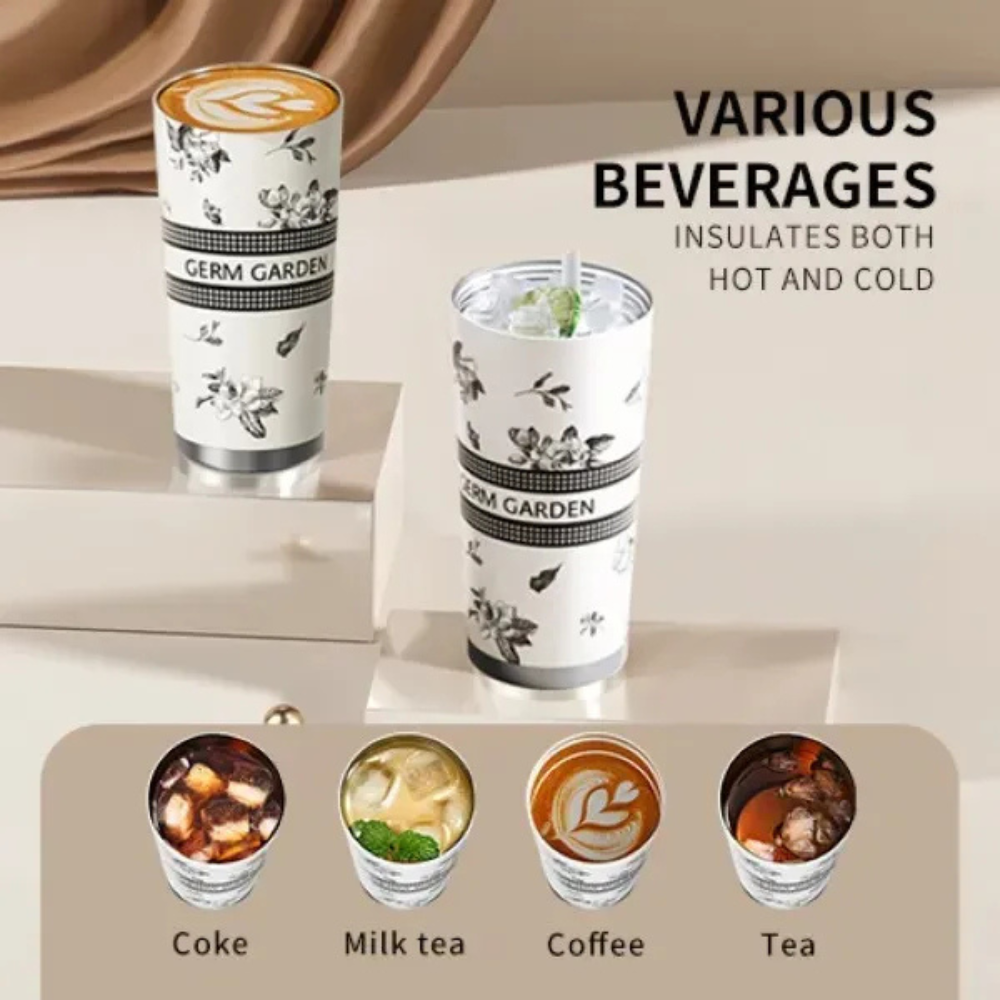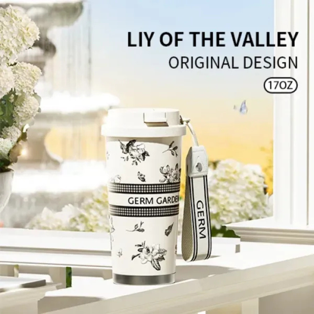 El nuevo Germ Antiguo Blanco es el termo perfecto para acompañarte en cualquier momento. Su diseño con delicadas flores y su capacidad de 500 ml lo convierten en un accesorio práctico y estiloso, ideal para mantener tus bebidas en la temperatura ideal por horas.