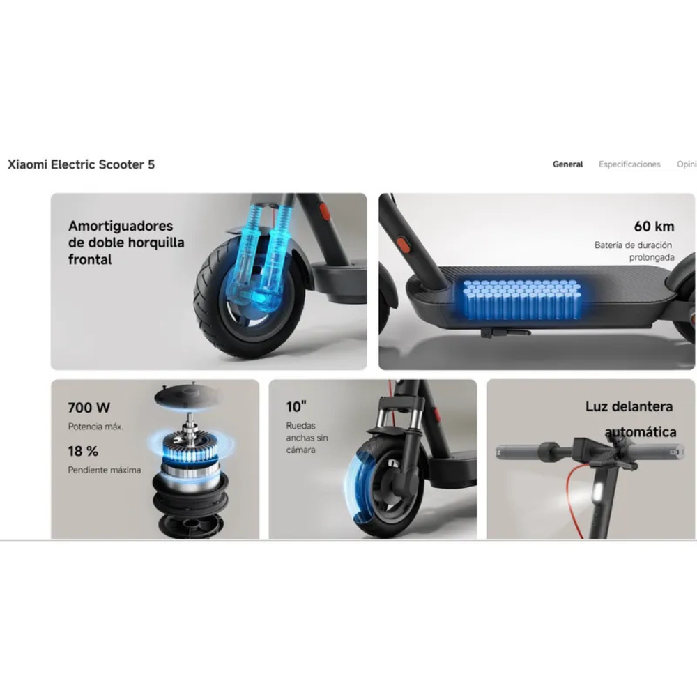 Vive una experiencia de movilidad única con el nuevo Scooter Eléctrico Xiaomi, diseñado para ofrecerte potencia, seguridad y comodidad en cada trayecto. Con una autonomía de hasta 60 km, tres modos de velocidad, y un motor de 700 W de potencia máxima, disfrutarás de un recorrido estable, eficiente y divertido.