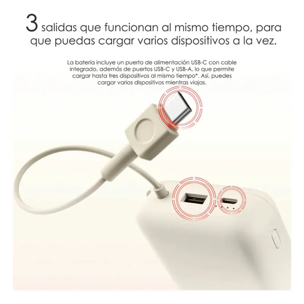 Gracias a su tecnología de carga rápida de 33W, tus dispositivos recuperan energía en minutos. Compatible con la mayoría de equipos iOS y Android, para que siempre tengas conectividad sin importar el dispositivo.