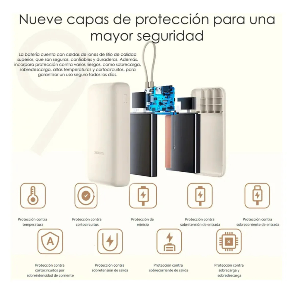 Equipado con múltiples sistemas de protección contra sobrecargas, cortocircuitos y sobrecalentamiento, protege tanto a tus dispositivos como al propio powerbank. Fabricado con los más altos estándares de calidad y con 1 año de garantía, para tu total tranquilidad.